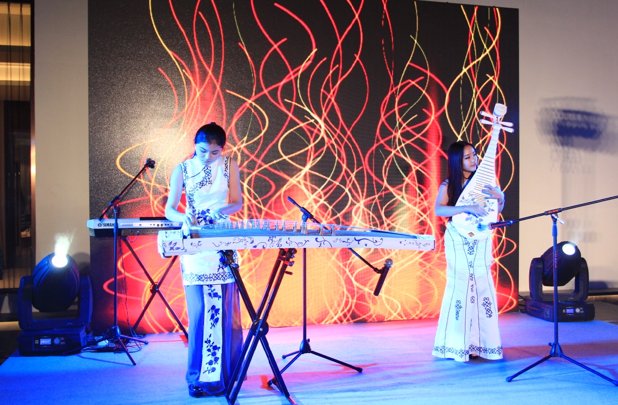 令人流連忘返的自由品鑒之旅結(jié)束后,唐榮文化中心立即將賓客引入桌餐區(qū),為饑腸轆轆的他們呈上由專業(yè)大廚精心烹制的各式美食。寬敞的露臺(tái)上,擺滿高腳桌椅,賓客們?cè)谏搅置谰暗挠骋r之下,自取自食、自斟自飲,或高談闊論,或低聲細(xì)語,把酒言歡、觥籌交錯(cuò),在品嘗極致美味的同時(shí),傾聽菲律賓爵士樂隊(duì)的浪漫歌聲,期待著更加精彩的舞臺(tái)表演的開始。